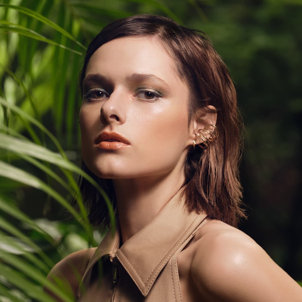 隐含暗沉的颜色中填满了大小不一的高亮度珍珠的油润配方,彰显光泽的同时贴合眼睑。