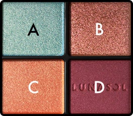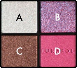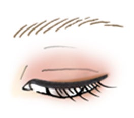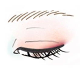 - 使用粗头,将A涂于上眼睑的中央,同时涂于下眼睑的边缘。