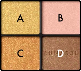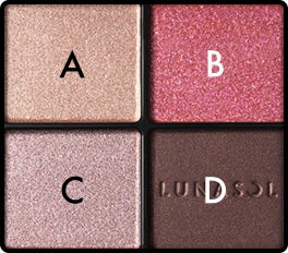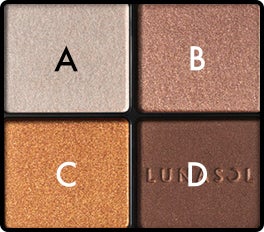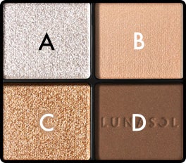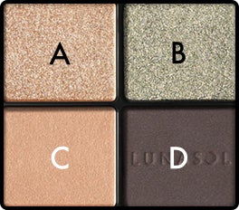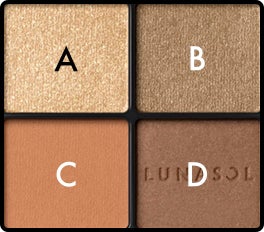 - 使用刷头,使B在C和肌肤的交界处晕开,并将其叠加于上眼睑的D上。
