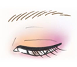 - 使用粗头,将B涂于上眼睑的中央和整个下眼睑。