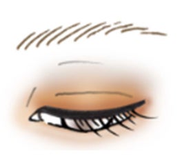 - 使用细头,将A描画于上眼睑的边缘和下眼睑的中央。