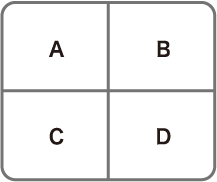 The upper left color is A, the upper right is B, the lower left is C, and the lower right is D.