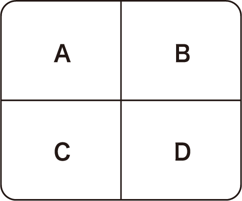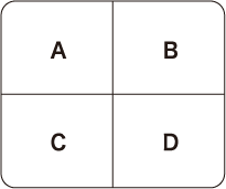 左上の色をA、右上をB、左下をC、右下をDとします。