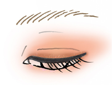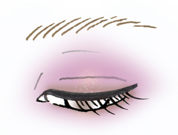 - Cをアイホールと下まぶたに、目のキワをあけてブラシで入れます。
