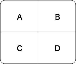 左上の色をA、右上をB、左下をC、右下をDとします。