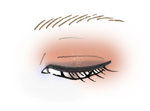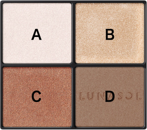 - 1. Cをアイホールにブラシで入れ、下まぶたの目尻から中央に向かってぼかします。